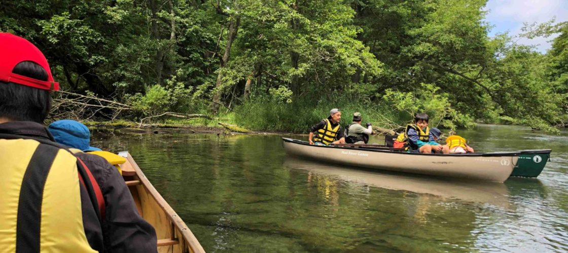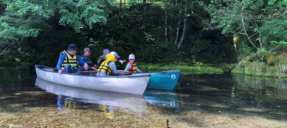 屈斜路湖からスタートし、釧路川の源流部を6人乗り(ガイド含む)のツインカヌーで下ります。夏休みごろには、浅瀬におりてザリガニを捕まえたり、川遊びをしながら豊かな屈斜路の自然の中をガイドがご案内します。